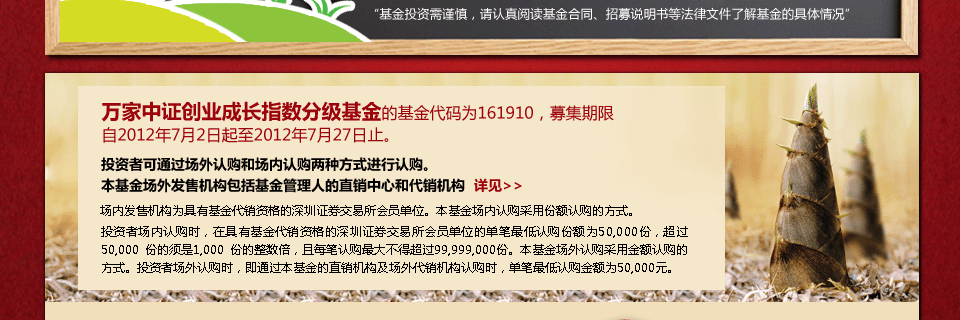 万家中证创业成长指数基金场内最低认购( ),场外最低认购( )