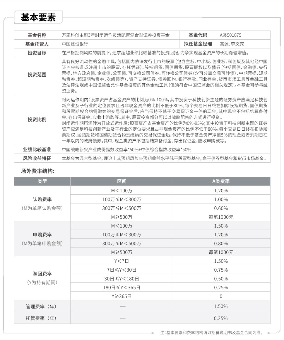 万家科创主题3年封闭运作灵活配置混合型证券投资基金