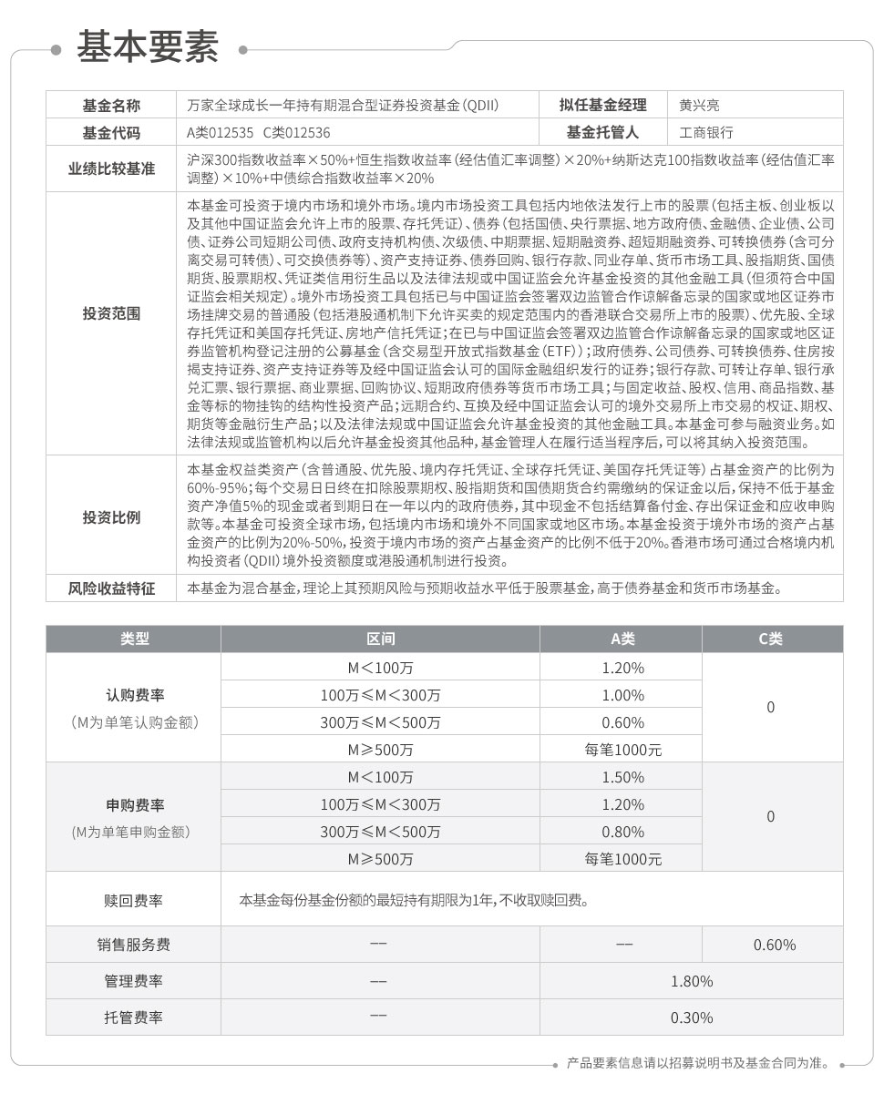 万家全球成长一年持有期混合型证券投资基金(QDII)