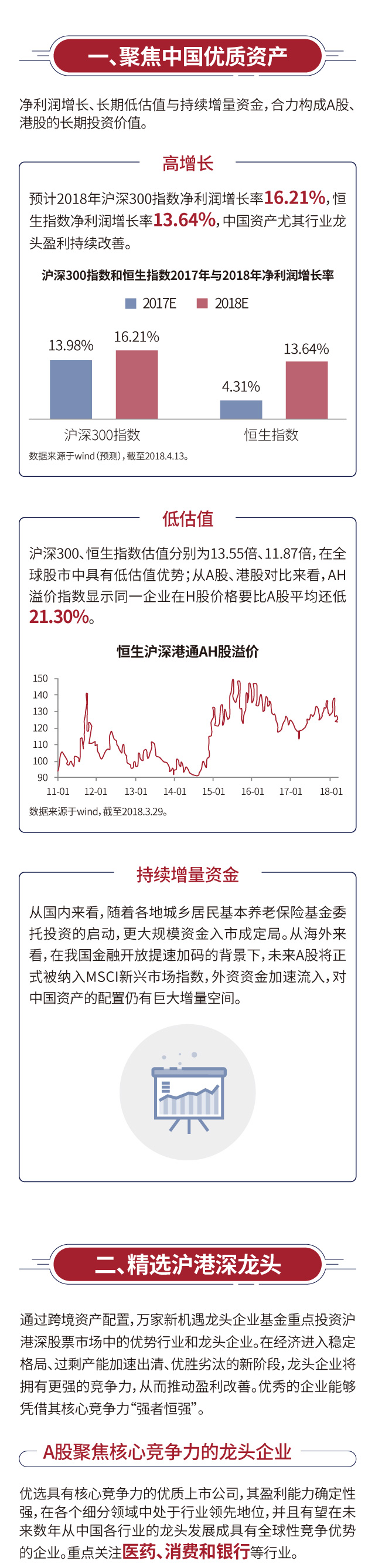 结合行业的特性和当前的表现,我们认为目前市场仍然处于防御性姿态,这也是对眼下宏观经济的反映。2017年我国GDP呈现企稳回升态势,但市场对经济的担忧仍在。在季节性、天气情况等因素的影响下,今年我国3月份开工情况较差,由此导致3月份数据回落幅度加剧。例如进出口数据呈现负增长,工业增加值下降。中观行业维度也看到了库存的过快堆积,例如Wind统计的全社会主要钢材库存,在3月份快速增长,峰值仅次于2013年和2014年的高点,在印证市场经济弱势的预期下,投资者防御心理加重。