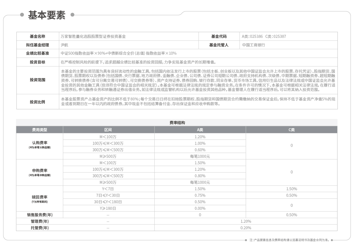 万家智胜量化选股股票型证券投资基金